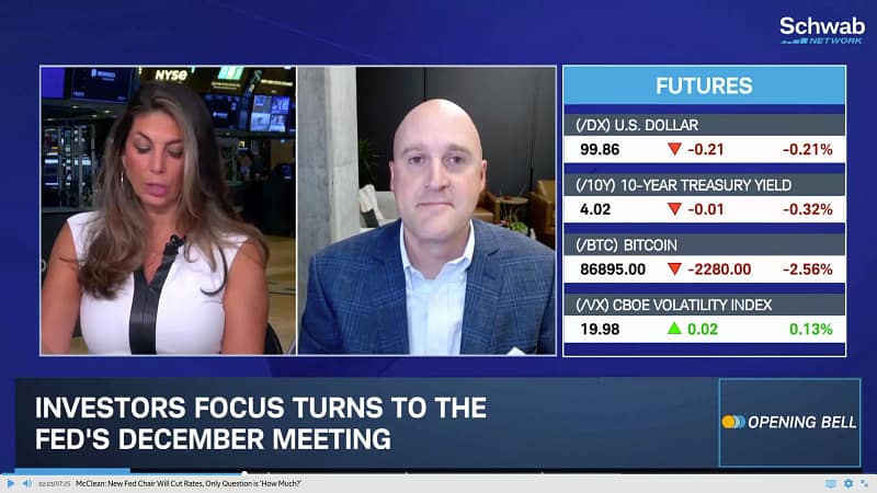 Jeff McClean thinks the Fed is more scared of the jobs market than inflation right now and says a rate cut in December is “definitely on the table.” He expects more cuts in 2026 with a new Fed Chair: “the only question is, how much?”